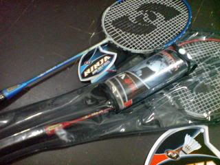 My mum came back today with bags of tidbits and chocolates and... two BADMINTON RACKETS (with 3 free shuttlecocks HAHAHA)!!!!!!