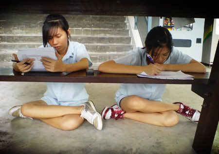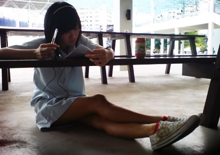 Here's 3 pictures while studying in school the other day. HAHAHAHA.