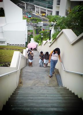 I conquered 138 steps of stairs!! This is the view from the top!We then climbed 138 steps to go to this place called Old School to take a look at the exhibitions. In the end it wasn't open to public. -_- Haha. Anyway do you see KuanYee in the picture? I swear she's damn cute!!
