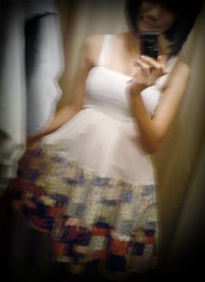 Some white dress, with quilt-like prints. Aiya I don't know what it's called lah. Those blanket you know. LOL.