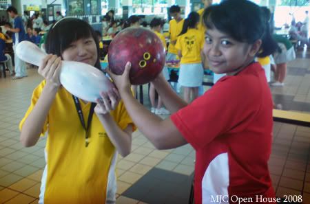My cute friend. Hahahaha that's the bowling booth at the canteen!