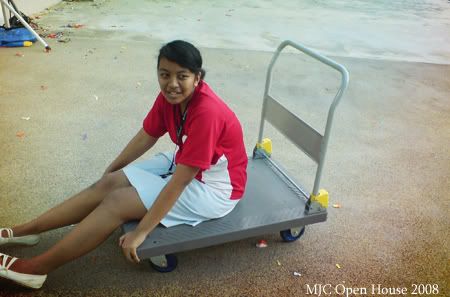 Anyway after that was the end of the MJC Open House. Not for us though. We had to shift back the tables and chairs, clear the trash, move the goodie bags to the GO for the teachers, give out the extra goodie bags, and arrange back the tables and chairs of the classrooms. Gosh.